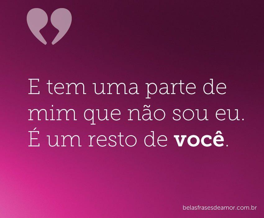 Frases de Amor “E tem uma parte de mim que não sou eu. É um resto ...